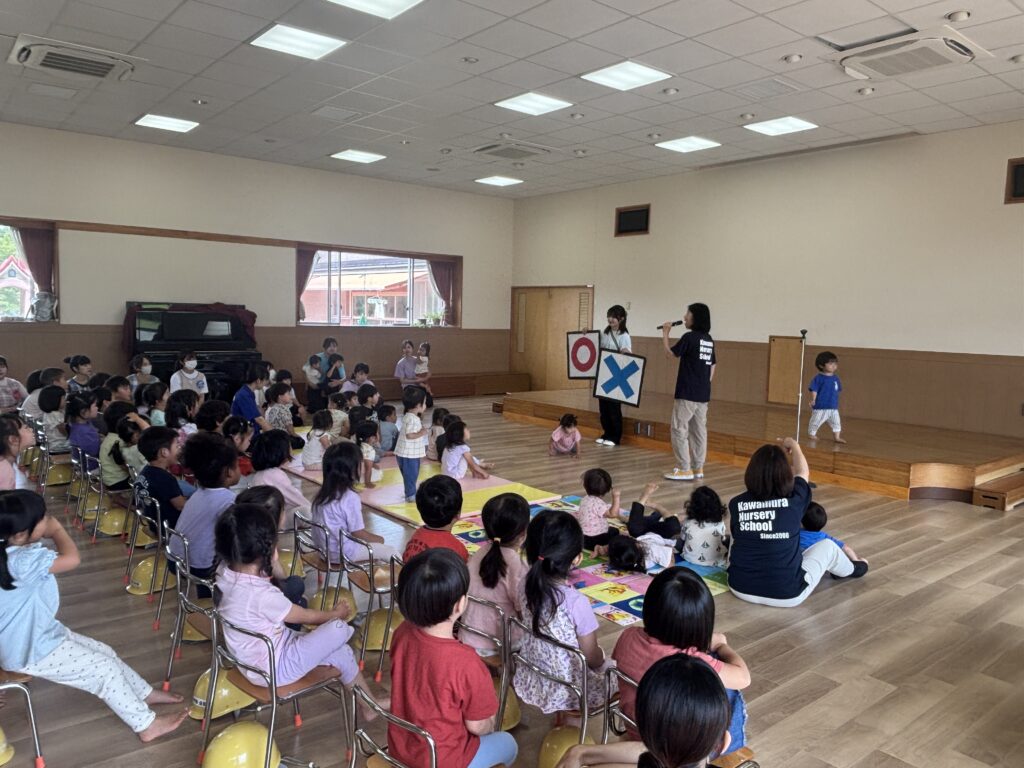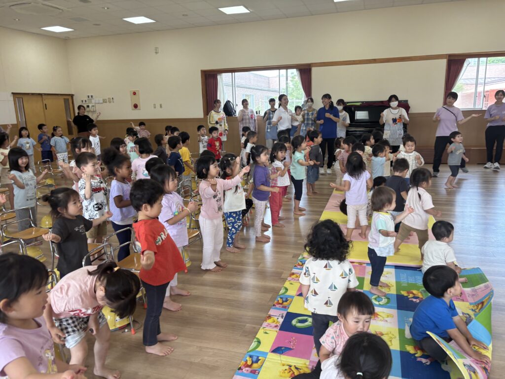 6月の誕生会 2025年6月4日 最終更新日時 : 2025年9月22日 保育士 6月の誕生会とプール開きを一緒に行いました。 誕生日をお祝いしたあと、楽しみにしているプール遊びについてのお約束を〇×ゲームにして楽しみながら覚えました。 最後はみんなの大好きなラーメン体操をして盛り上がりました! \ 最新情報をチェック /